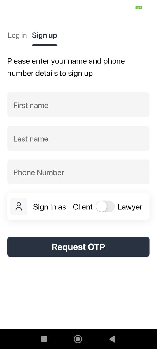 Clients can present their cases through the app, detailing their situation and legal needs.